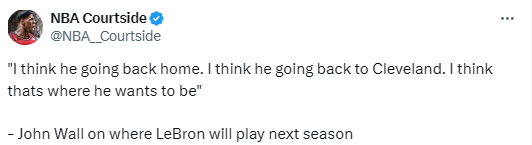 沃尔说道:“我总觉得他会回到家乡,回到克利夫兰。那是他想待的地方,也就在那里收尾职业生涯吧。那会是他最后一年,我觉得这会是他生涯篇章一个很棒的结局。”