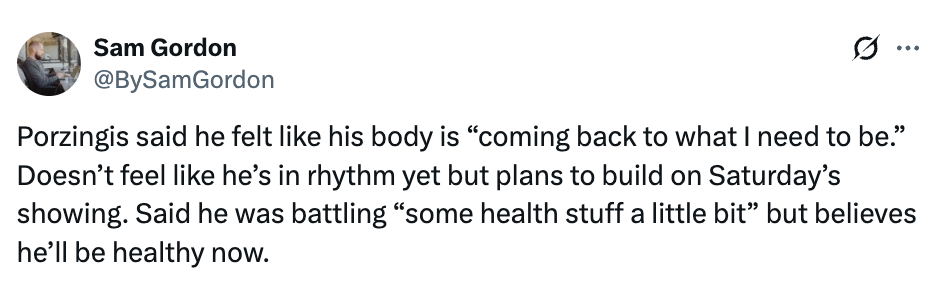 另外,波神也表示:“我感觉自己的身体正在回到我需要的状态,虽然我暂时还没找到节奏,但计划会在今天这场比赛的基础上继续提升。”