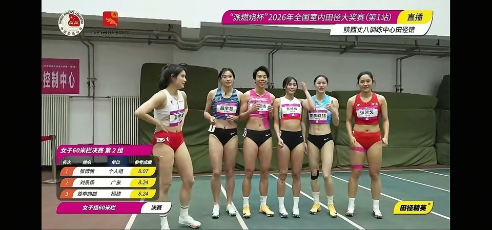 2026-03-08 17:20北京时间3月8日,2026年全国室内田径大奖赛(第1站),新科全运会冠军刘景扬输给了中国宝岛台湾的妹纸张博雅。张博雅这两个月太猛了,2月刚在天津以8秒12拿下亚洲室内锦标赛冠军,今天又以8秒07击败了新科全运会女子短跨冠军刘景扬。其实最失落的是夏思凝,现在又多了一个张博雅,以后她更难上领奖台了。