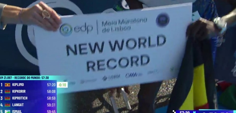 2026-03-08 19:203月8日,里斯本半程马拉松见证新的半马世界纪录。此前56分42秒世界纪录未被认可的基普里莫,在里斯本跑出了57分20秒的成绩,将男子半马世界纪录提升了10秒钟。