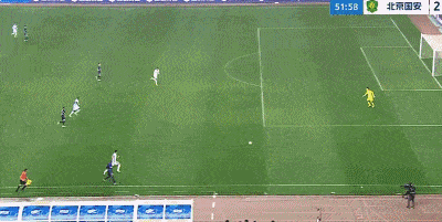 第51分钟,方镜淇超巨失误,他接队友回传犹豫,随后被王刚断球后扑倒对方,张玉宁得球吊空门得手,国安2-0领先三镇。