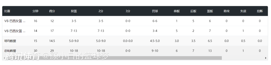 对阵巴西G1,全场比赛16分钟,5中3,罚球6中6,拿到12分6篮板,命中率60%;