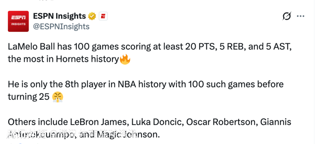 里程悲!三球达成生涯100场20+5+5 为历史第八位在25岁前解锁该成就球员