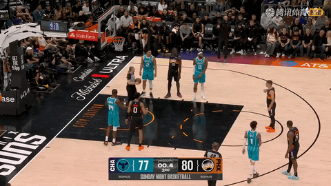 易边再战还剩12分钟至8分05秒间,黄蜂在第三节3.9分钟内未能得分,期间太阳一度通过吉莱斯皮中投、布克扣篮以及多次罚球,将比分从58-60扩大到59-68;其中从还剩11分41秒到9分18秒,太阳连续三次迫使黄蜂失误,把比分从58-60拉开到58-66。黄蜂随后依靠克努佩尔三分、怀特三分和迪亚巴特空切扣篮在还剩1分28秒时追至77-78,但第三节压哨,吉莱斯皮在还剩0秒时3罚全中,将比分从77-78改写为81-77。