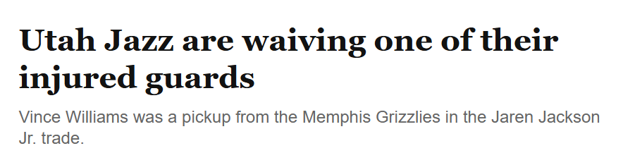 作为2022年选秀第47顺位球员,威廉姆斯上月与小贾伦-杰克逊及另外两名球员一起,从灰熊被交易至爵士。