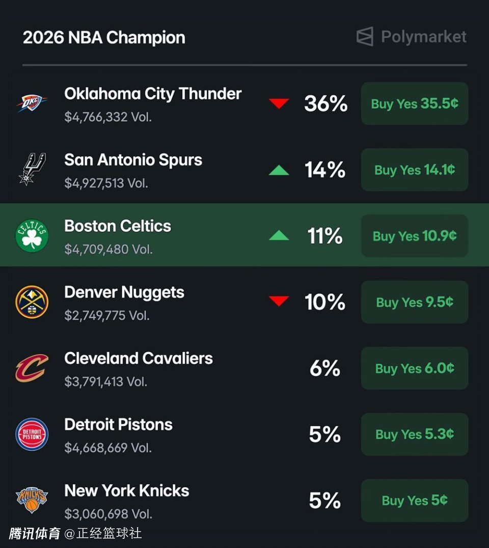 随着塔图姆复出给球队带来正向帮助,凯尔特人队的夺冠赔率也提升了很多。根据最新夺冠赔率显示,凯尔特人队高居第三位,仅次于雷霆队和马刺队,在东部则是排名第一位。