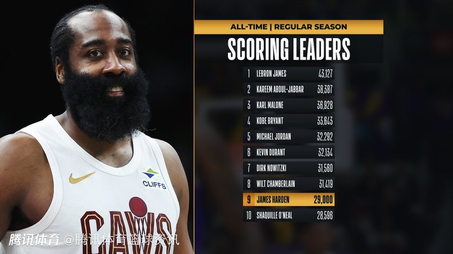 2026-03-10 08:00北京时间3月10日,NBA常规赛继续进行,骑士对阵76人。骑士球星哈登本场首发出战。第一节,哈登罚中两球后,生涯总得分达到29000分,就此成为NBA历史上第九位职业生涯总得分突破29000分的球员。排在之前的八位分别是:张伯伦、诺维茨基、杜兰特、乔丹、科比、卡尔-马龙、贾巴尔和詹姆斯。