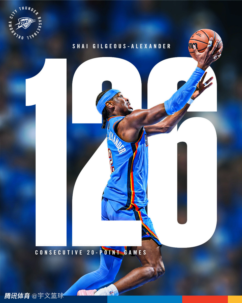 亚历山大三分出手命中,他正式收获20+得分,连续126场比赛拿到20+得分追平张伯伦的历史纪录,迎来生涯又一个重要的里程碑时刻。亚历山大再次展示自己的超强进攻表现,引领球队连续三分命中,回头冲筐打进2+1,帮助雷霆仍然保持着3分领先进入第四节。
