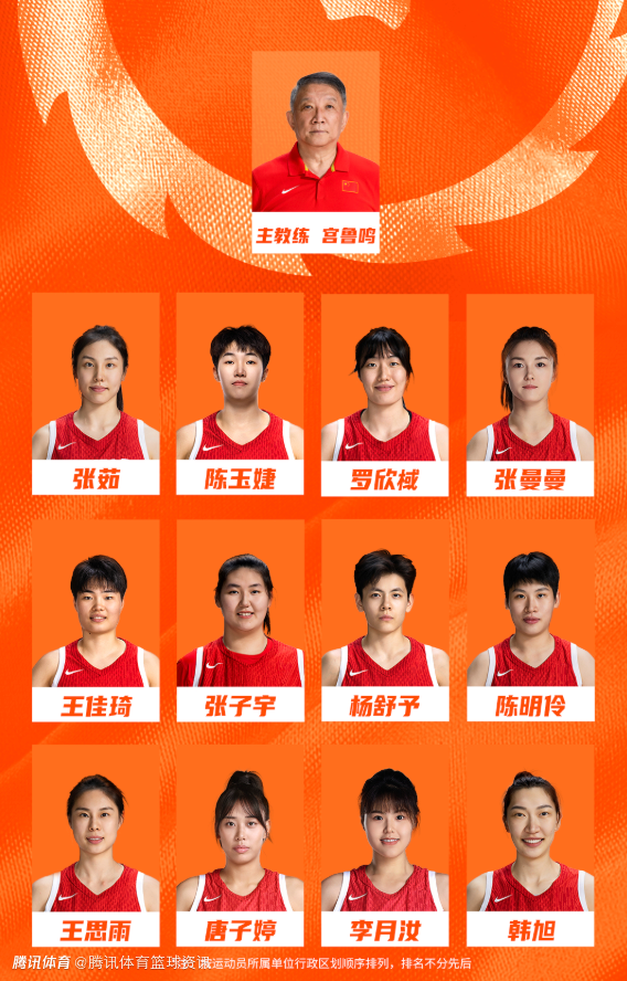 入选12人名单球员分别为:张茹、陈玉婕、罗欣棫、张曼曼、王佳琦、张子宇、杨舒予、陈明伶、王思雨、唐子婷、李月汝、韩旭。