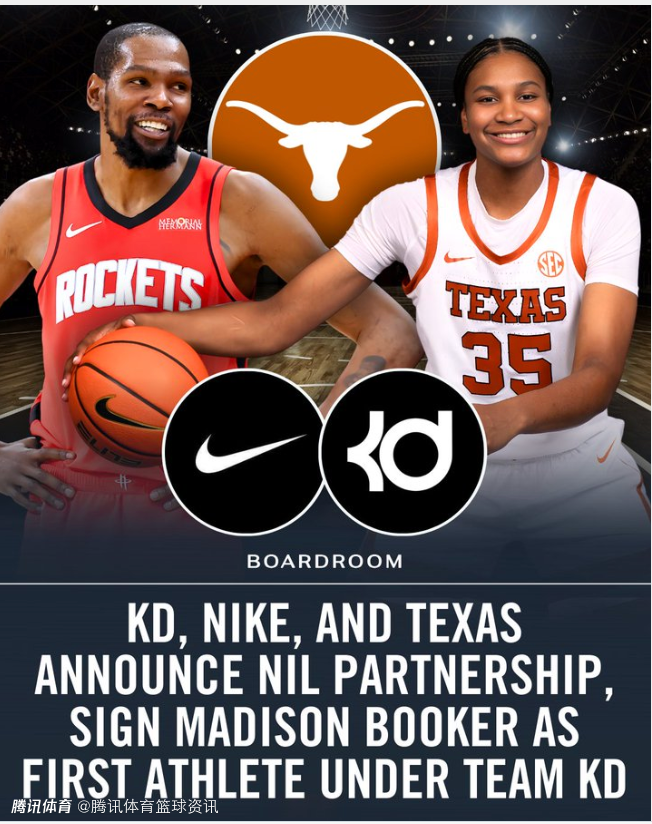 在与耐克的合作下,得克萨斯大学女篮前锋麦迪逊-布克将成为首位获得KD系列签名鞋、服饰及其他相关资源的运动员。