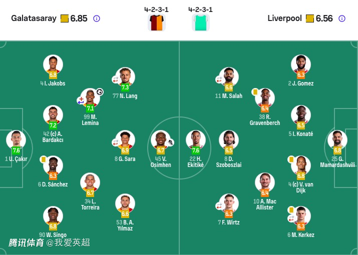 加拉塔萨雷首发:1-恰基尔、4-伊斯梅尔·雅各布斯、42-巴尔达克彻、6-达文森·桑切斯、90-辛格、99-勒米纳(77'11-阿克金)、34-托雷拉(93'17-埃尔马利)、77-诺阿·朗(77'7-绍洛伊)、8-萨拉(87'93-博伊)、53-伊尔马兹(93'20-京多安)、45-奥斯梅恩