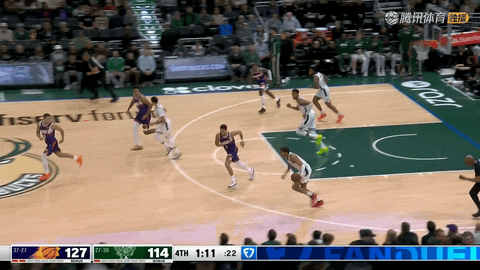 之后雄鹿在还剩8分39秒时由阿德托昆博跑动挑篮命中追成9平,但布克在还剩1分37秒时命中三分,阿伦又在还剩1分06秒时完成三分加罚,太阳从平局拉开到6分优势,首节以36:30领先。