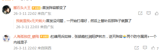 球迷对于杜锋最后时刻的用人也表达不满。