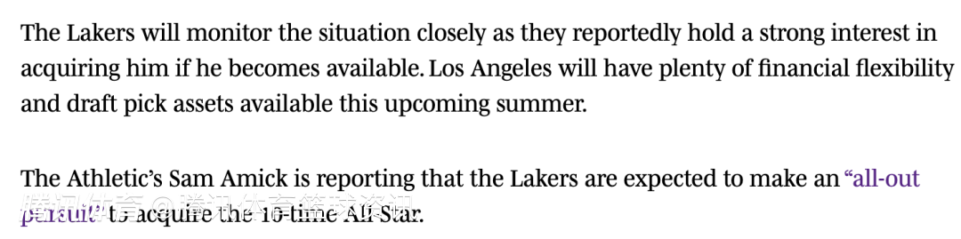 2026-03-12 00:40北京时间3月12日,据美记Sam Amick报道,湖人预计会全力追求字母哥。