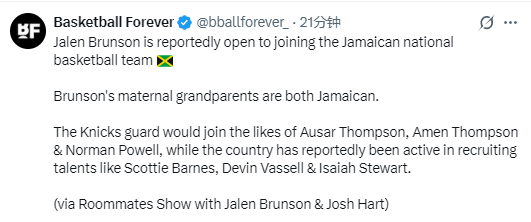 再添强援?布伦森公开表态愿代表牙买加参加奥运 球队已集结多位NBA球星