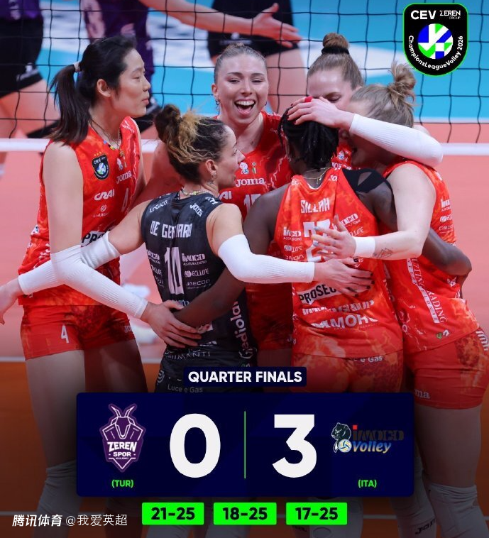2026-03-12 10:40在北京时间3月12日结束的女排欧冠1/4决赛首回合一场焦点战中,意甲霸主科内利亚诺在客场3-0横扫土超球队泽仁体育,3局比分为25-21、25-18、25-17。
