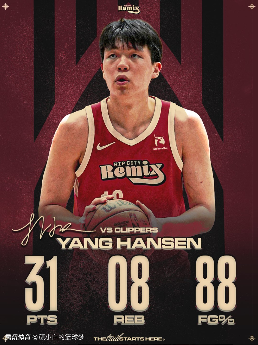 第三节的杨瀚森依旧是4中4拿到10分,三节打完12中12拿到27分,杨瀚森创造了个人G联赛的连续命中纪录,全场比赛31分钟,16中14,三分1中1,拿到31分8篮板3助攻1抢断1盖帽仅1失误,命中率88%,三分命中率100%。
