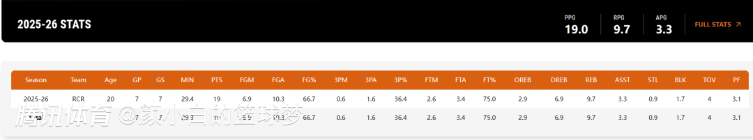 实际上这场比赛后,杨瀚森在G联赛场均29.4分钟,拿到19.3分9.7篮板3.3助攻0.9抢断1.2盖帽,命中率66.7%,三分命中率36.4%,这个数据真的不差。