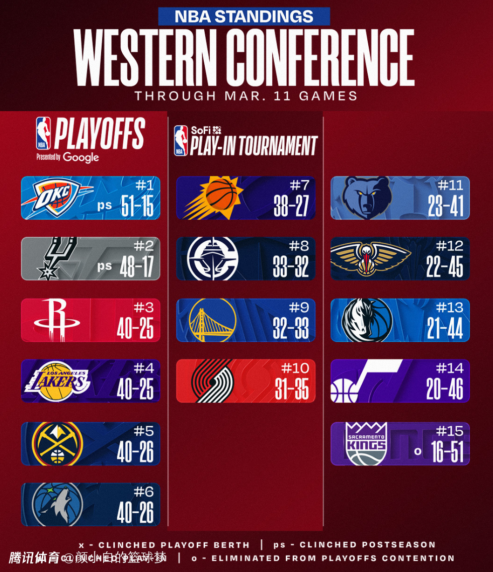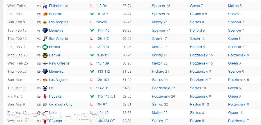 自1月31日对阵活塞后库里就高挂免战牌,这期间勇士的15场比赛输掉了其中10场,勇士也从西部第八掉到西部第九,勇士与快船的胜场已经拉开到1个,勇士已经处于附加赛下半区。
