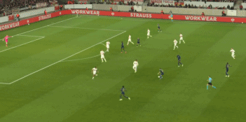 第90分钟,弗赖奇禁区前沿抢在防守球员之前抽射,皮球稍稍高出目标。