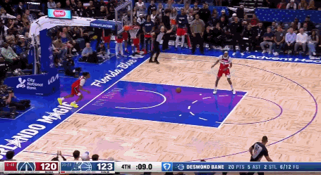 在之前与热火队的比赛中,奇才队也在最后时刻成为了阿德巴约砍下83分的背景板。