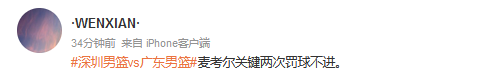 第四节决战时刻,麦考尔出现2罚不中,送给深圳反扑的机会。