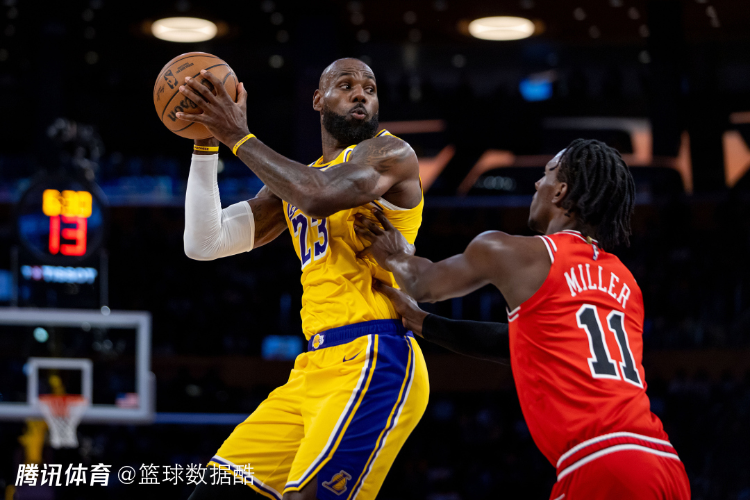 与公牛一战,詹姆斯直到第二节才尝试第一次投篮,上半场五投仅一中,随后他在第三节打出了全面的表现,帮助湖人队一举拉开比分。