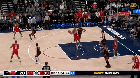 第三节还剩6分18秒到4分06秒这段时间里,公牛在2分12秒内连续5次进攻得分,打出11比3攻势,将比分从68比75追到79比78完成反超,吉迪这段时间拿下4分并送出3次助攻,米勒完成扣篮、迪林汉姆命中三分点燃全队士气。