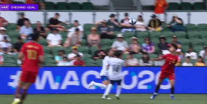 第39分钟,邵子钦中场分球,张馨右路横传,王霜头球冲顶破门。按照本届女足亚洲杯的惯例,视频助理裁判介入判罚。