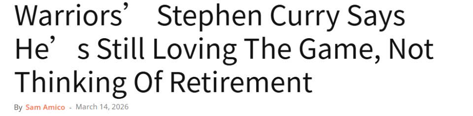 2026-03-15 05:00北京时间3月15日,勇士球星斯蒂芬-库里迎来38岁生日。他已经在NBA征战多年,这一点众所周知。但退役,目前还不在他的考虑范围内。