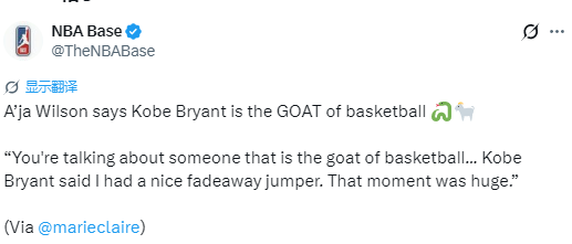 阿贾-威尔逊:科比是篮球史上最佳球员 他曾夸我后仰跳投很漂亮