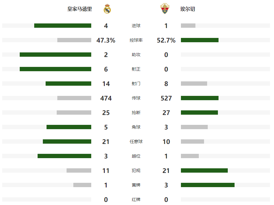 2026-03-15 06:10北京时间3月15日凌晨,西甲第28轮中,皇马主场4-1击败埃尔切,各项赛事三连胜,落后少赛1场的巴萨1分。吕迪格先拔头筹,巴尔韦德远射破门,近2场各项赛事打入4球,赫伊森锁定胜局,曼努埃尔-安赫尔自摆乌龙,居莱尔后场远距离吊射进球。