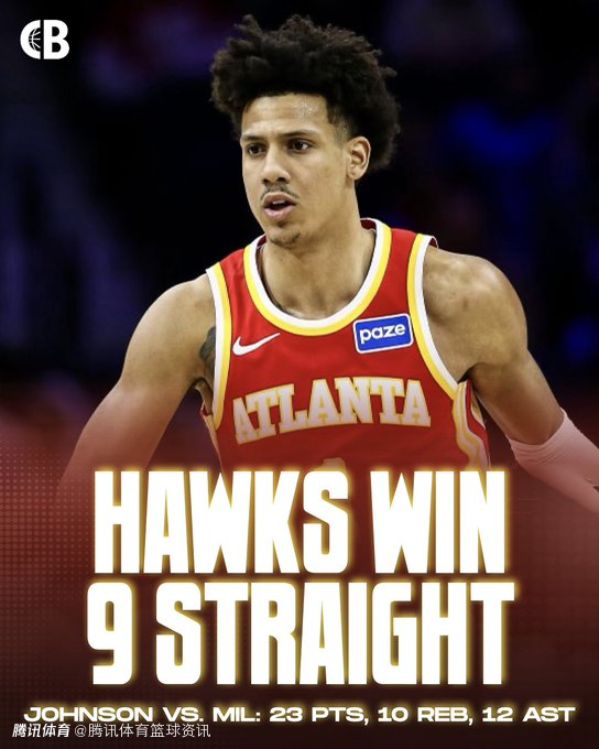 老鹰豪取9连胜!杰伦-约翰逊单赛季20+10+10三双次数比肩詹皇字母哥