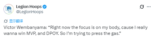 野心拉满!文班亚马:我要拿MVP和最佳防守球员 从现在起踩满油门