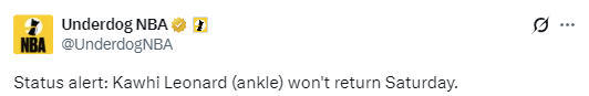 从慢动作回放来看,当时莱昂纳德试图防守德罗赞的跳投,结果在落地后,他疑似崴脚。泰伦-卢立即将他换下,而莱昂纳德在回到替补席后,用手捂着自己的胸口,显得非常痛苦。随后他在快船队工作人员的陪同下站起,返回了更衣室。