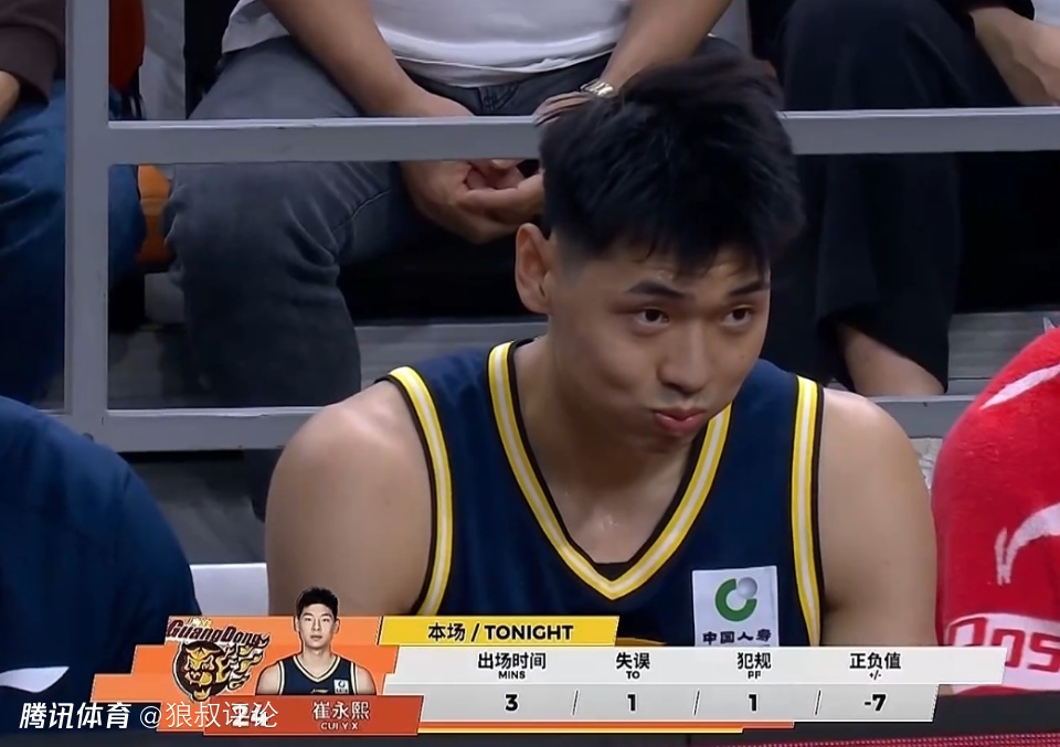 截止首节,崔永熙登场3分钟,没有得分进账,送出1次失误和1犯规,正负值为-7。