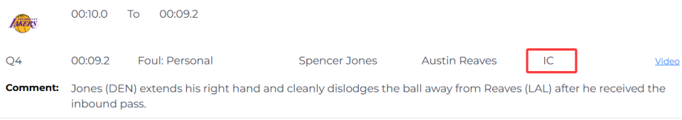 唯一一次错判,发生在距离比赛结束还有9.2秒。裁判报告指出,掘金的琼斯在里夫斯接到边线发球后,伸出右手干净利落地把球断了下来。而当值裁判吹的是琼斯犯规,这是一次错判,里夫斯本不该获得两次罚球机会。这个回合,里夫斯两罚两中,帮助湖人缩小分差。湖人明显获利,掘金吃亏。