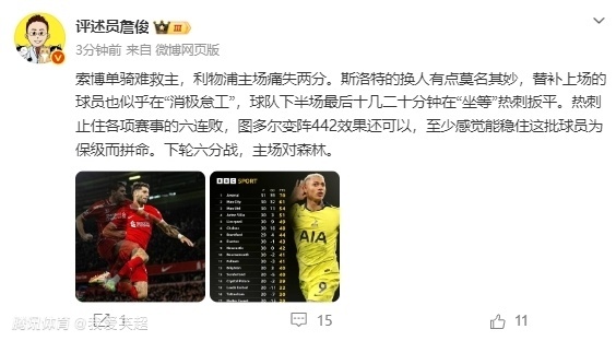 第83分钟,斯洛特更是在比分不保险情况下,颇具争议换上了18岁的新星尼奥尼。结果利物浦中路防守大开,被热刺成功绝平。