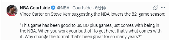 2026-03-16 08:40北京时间3月16日,前NBA球员文斯-卡特在节目中谈到了勇士队主教练史蒂夫-科尔“NBA应缩减10场常规赛”的言论,并提出了反对意见。