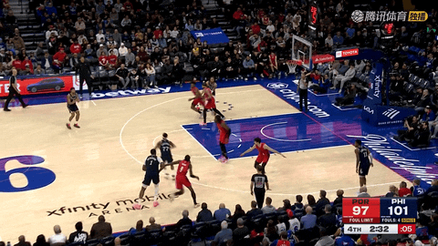 终场哨响,76人109-103战胜开拓者。