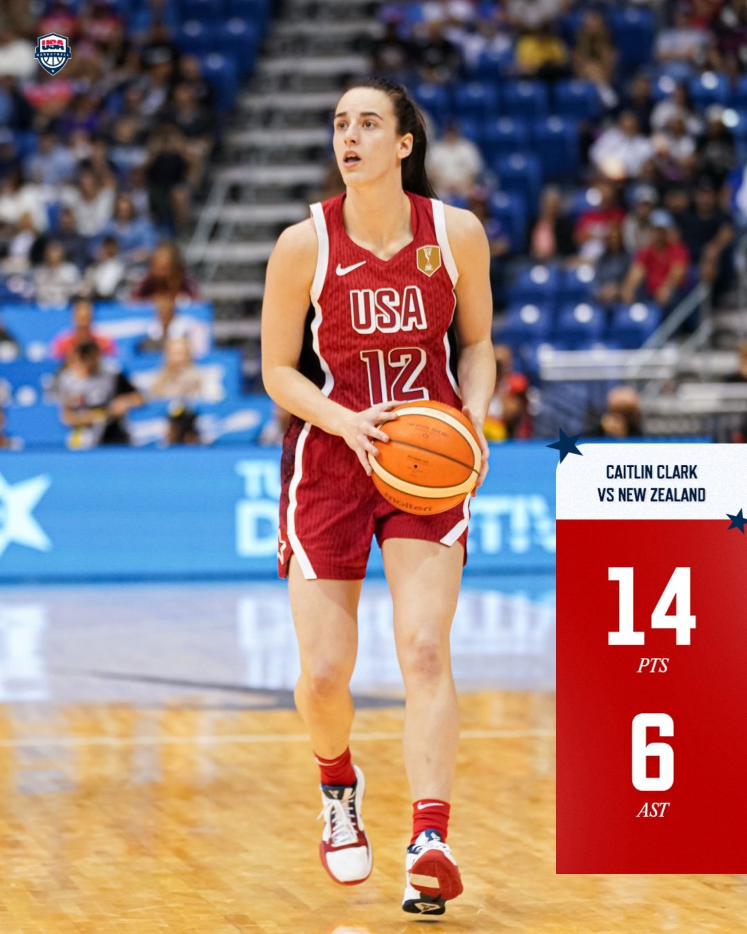 全场美国以101:46大胜55分,投篮命中率达到58.82%,远高于新西兰的31.15%,同时在助攻(29比10)、抢断(17比5)等团队数据上全面碾压对手。
