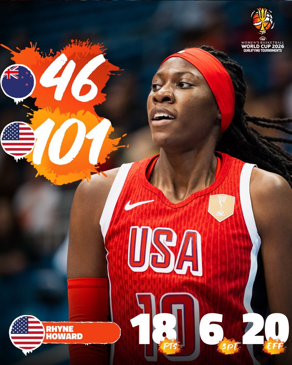 2026-03-16 09:20北京时间3月16日,女篮世界杯预选赛,新西兰女篮46:101不敌美国女篮,美国以55分优势豪取大胜。美国上半场便打出54:18的悬殊比分,几乎提前奠定胜局,投篮命中率高达58.82%,在助攻和抢断上全面压制对手。替补出场的霍华德外线手感炙热,投进6记三分砍下全场最高18分,多次续上火力,成为此役最耀眼的得分点。