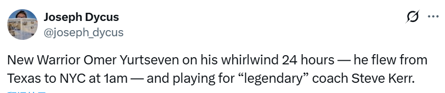 新援尤尔特塞文:凌晨1点才赶到纽约 正在适应勇士风格调整打法