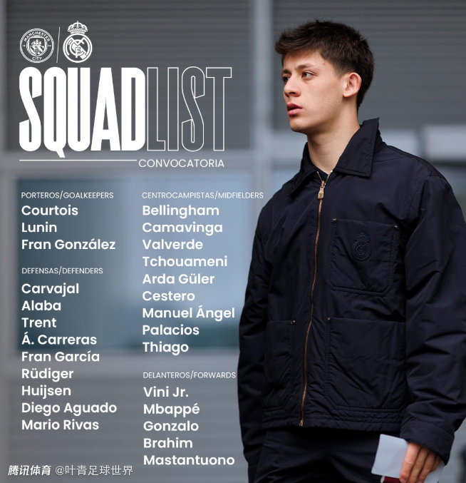 出征之前,皇马官方公布大名单: