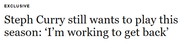 拒绝赛季报销!库里本人确认将争取复出:很想打季后赛去拼一把