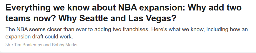 一文读懂NBA扩军:赌城和西雅图为何被看中 森林狼去东部最合理