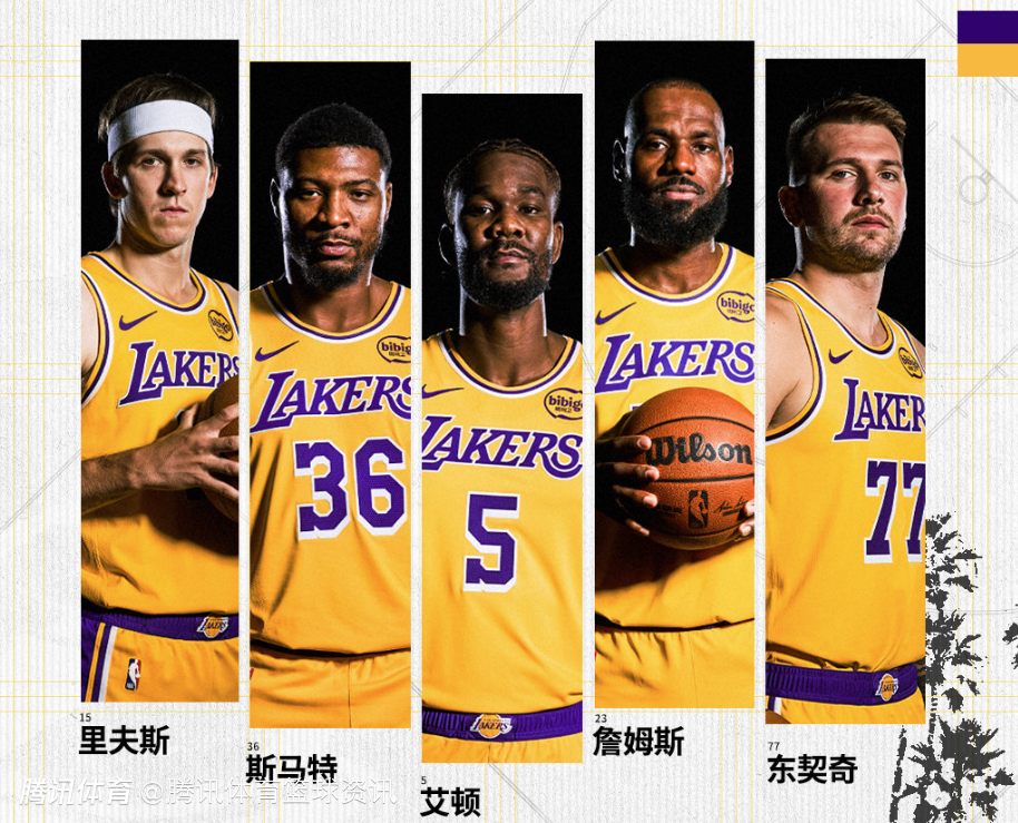 湖人队的首发阵容为:斯马特、詹姆斯、艾顿、里夫斯和东契奇。这是湖人队本赛季第10次使用这套首发阵容,此前9场他们取得5胜4负的战绩。克勒贝尔因腰部伤势缺席本场比赛。