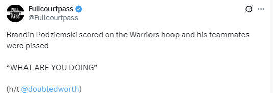 这次乌龙事件也让勇士队的其他球员们非常不满,还有人怒喷道:“你们在搞什么啊?”