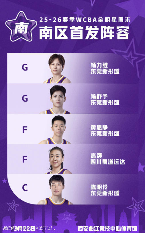 南区首发球员为:杨力维、杨舒予、黄思静、陈明伶(东莞新彤盛)、高颂(四川蜀道远达)。