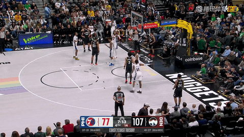 易边再战,76人加强外线进攻,但约翰逊在第三节还剩10分45秒时命中三分稳住局面。第三节还剩2分35秒到还剩1分52秒时,博尚和德拉蒙德连续命中三记三分,将比分从63-91追至69-94,不过节末瓦兰丘纳斯内线得手,掘金仍以100-71保持大比分领先。